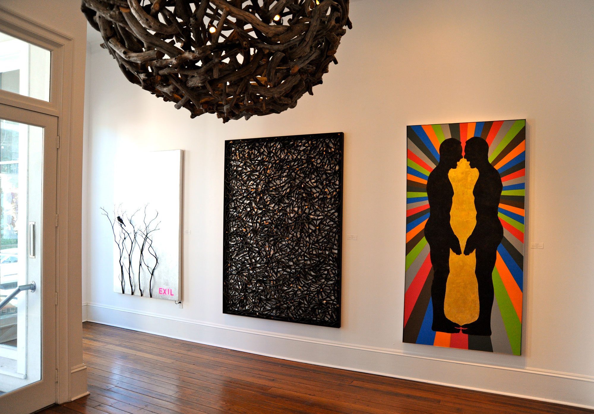 These fires leave the existing hardwood trees with black, skeletal looking branches that I have used extensively in my projects. Black lines drawn with burned wood.